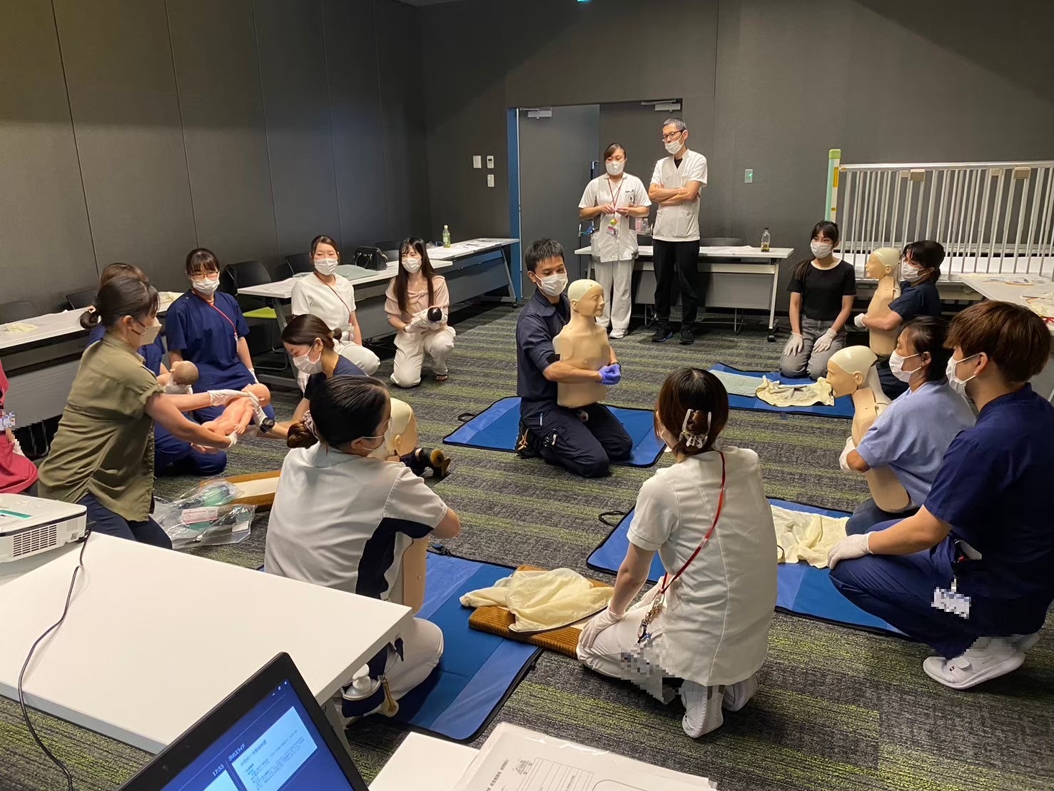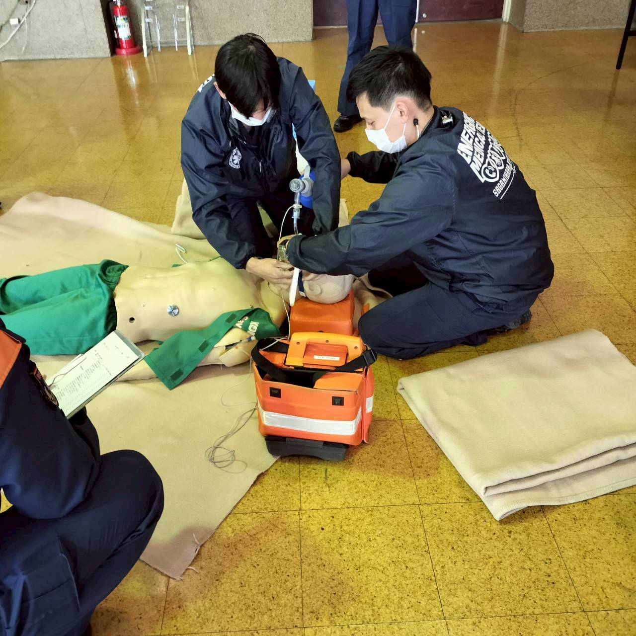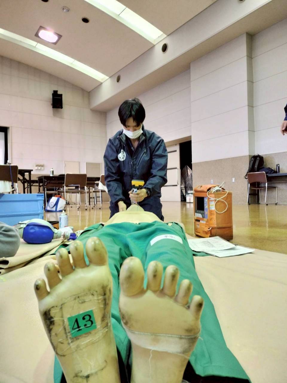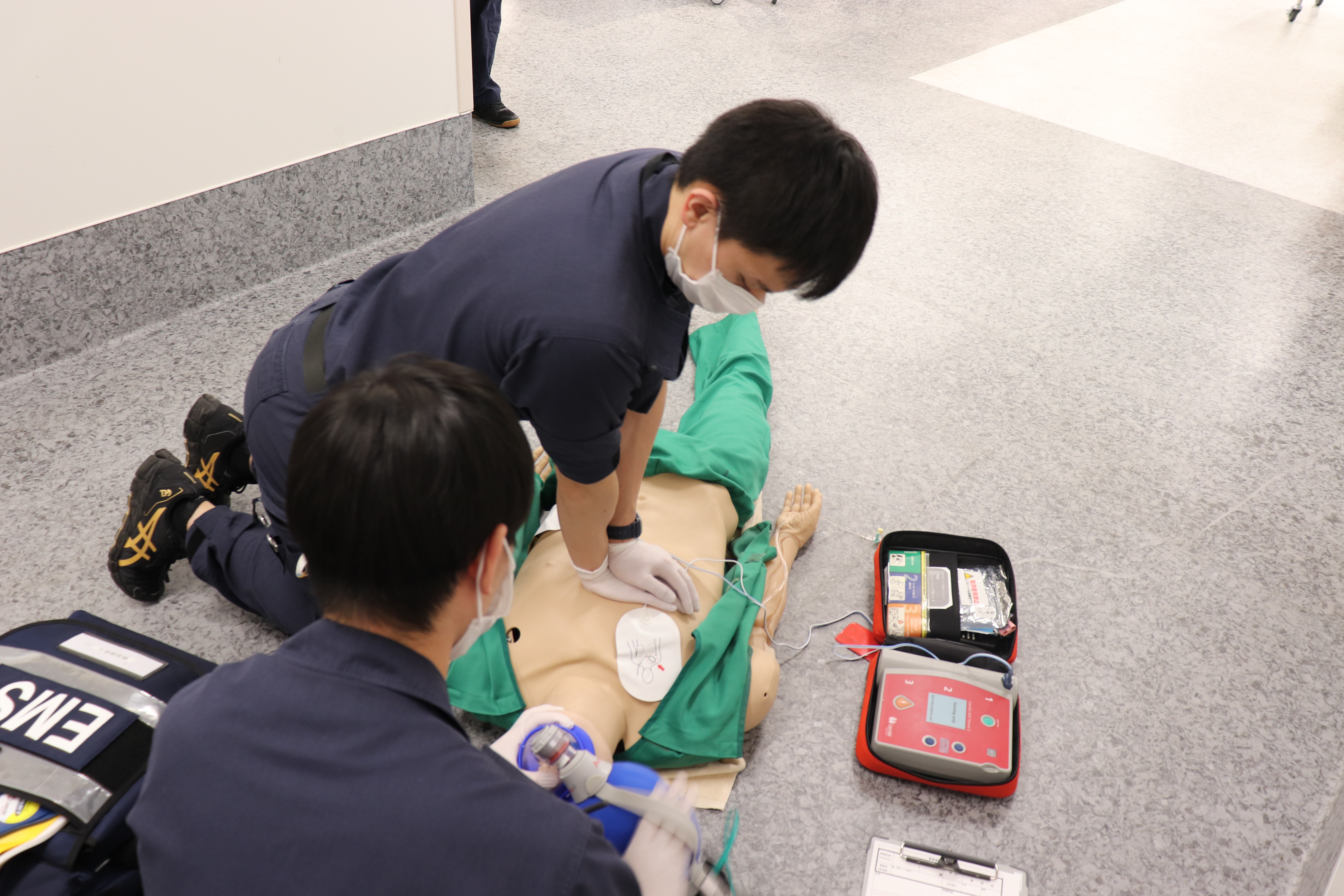 救急救命士科は救急対応のプロフェッショナルとして日々研鑽しています。急変対応やドクターカー活動のシミュレーション訓練、症例検討会や心電図・循環器等の勉強会、臨床工学技士とPCPS/IABP搬送訓練、救急外来看護師、研修医、病棟看護師と他職種合同で様々な訓練も定期的に行っております。