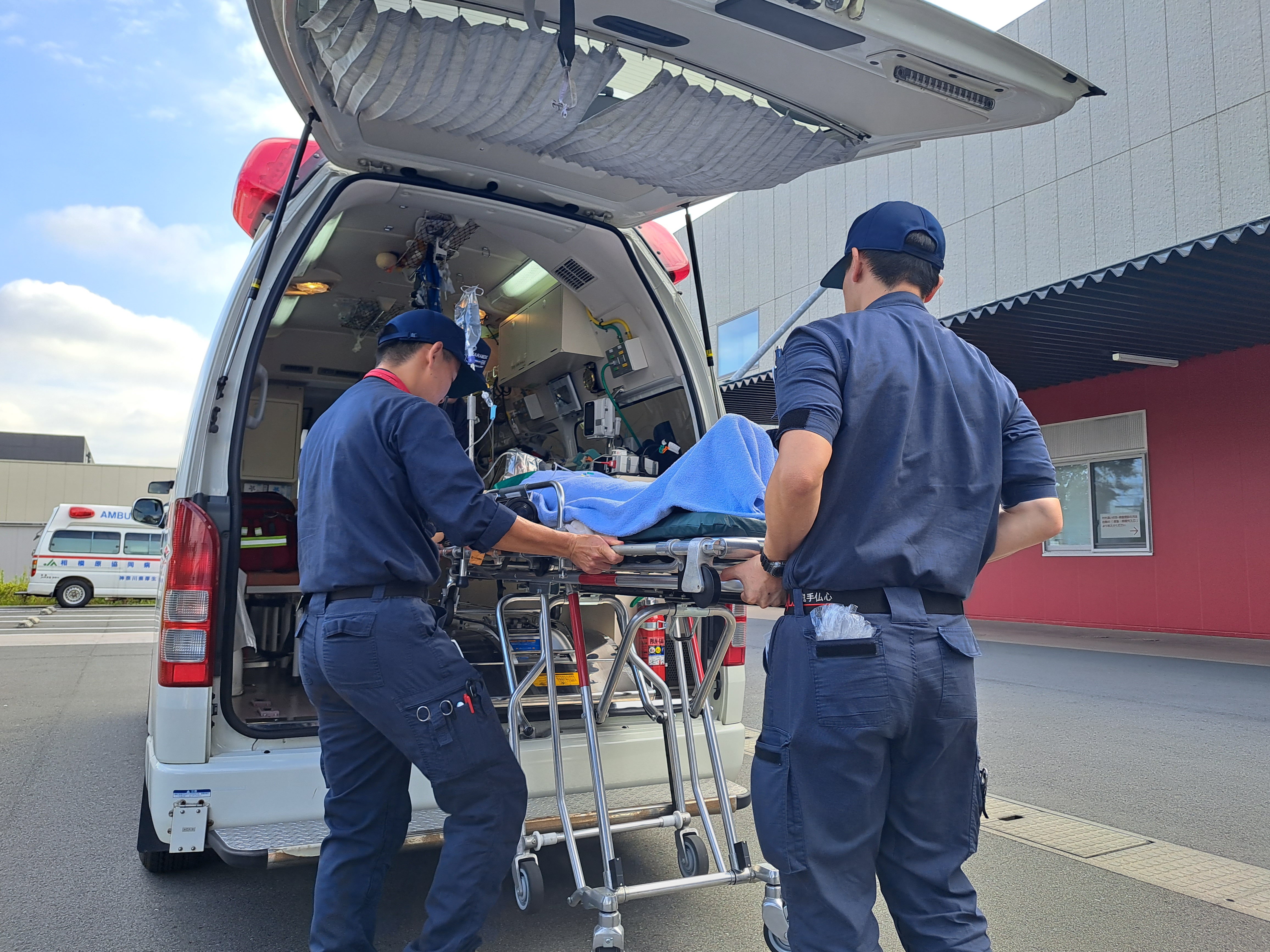 令和7年7月より洋上救急出動対象に病院内勤務の救急救命士が追加、同年、相模原協同病院は洋上救急協力医療機関として登録され、海上で発生した傷病者への対応に救急救命士が関わっています。海上保安庁と連携し迅速な対応ができるようこうした特殊環境での任務に備え、普段の装備だけでなく専用の物品も用意しています。洋上救急慣熟訓練にも参加し、広域にわたる救急医療の一端を担う事も当科の大きな特徴です。