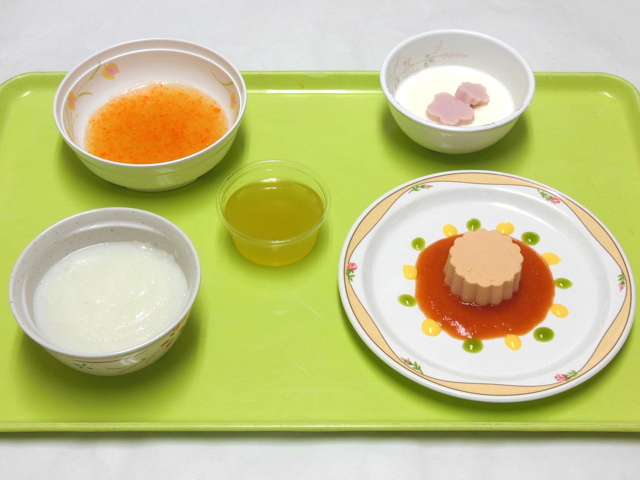 バースデーデザートは治療食それぞれのメニューに対応してお出しいたしますので、安心してお召し上がりください。ただし、流動食・3分粥食をお召しあがりの患者さんにはバースデーデザートの対応はいたしておりませんので、ご了承ください。