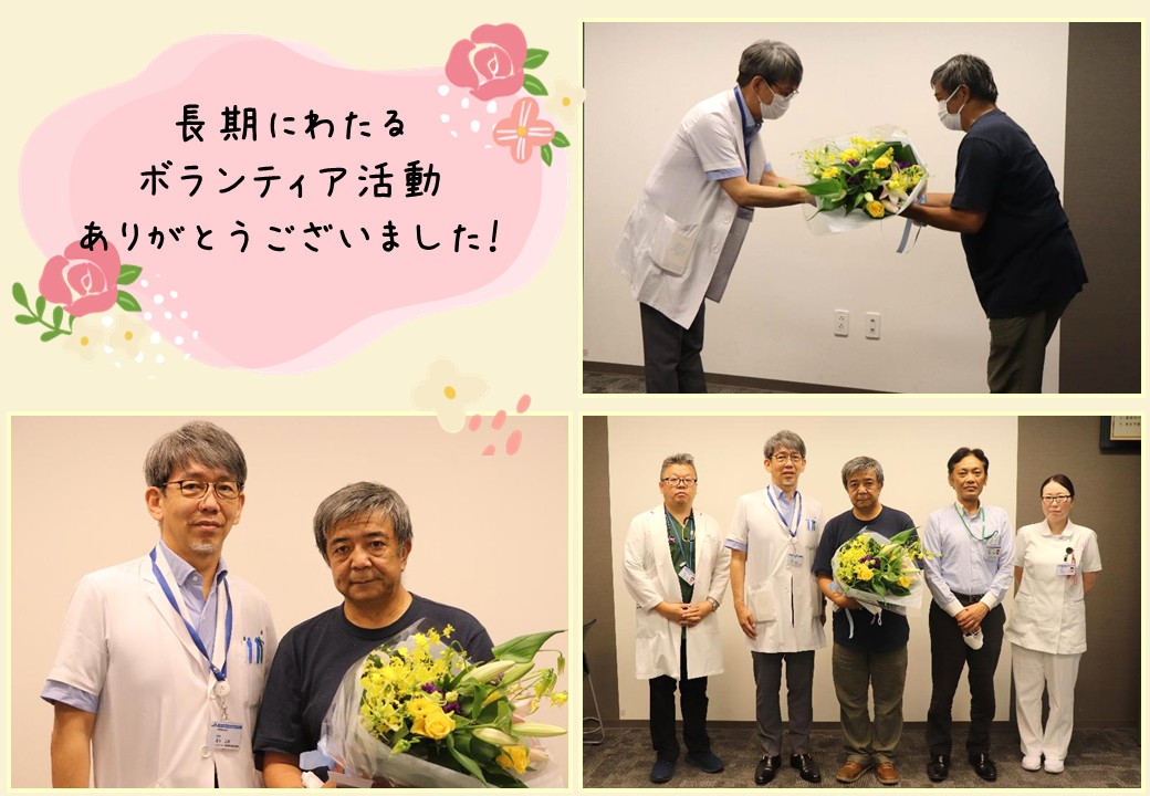 本日、当院で2年間ボランティア活動をしてくださった柏原さんの活動最終日となりました。活動への感謝の気持ちを込めて、病院長 荒木正雄より花束の贈呈を行いました。長期にわたるボランティア活動ありがとうございました!