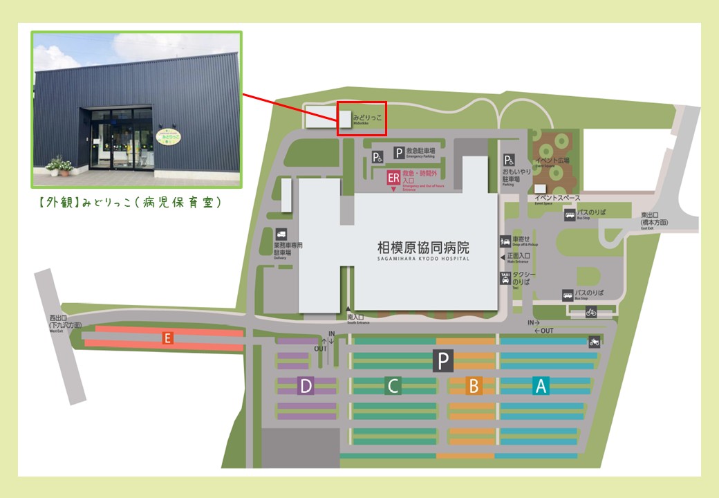 協同病院会計窓口 → 病児保育室「みどりっこ」施設内