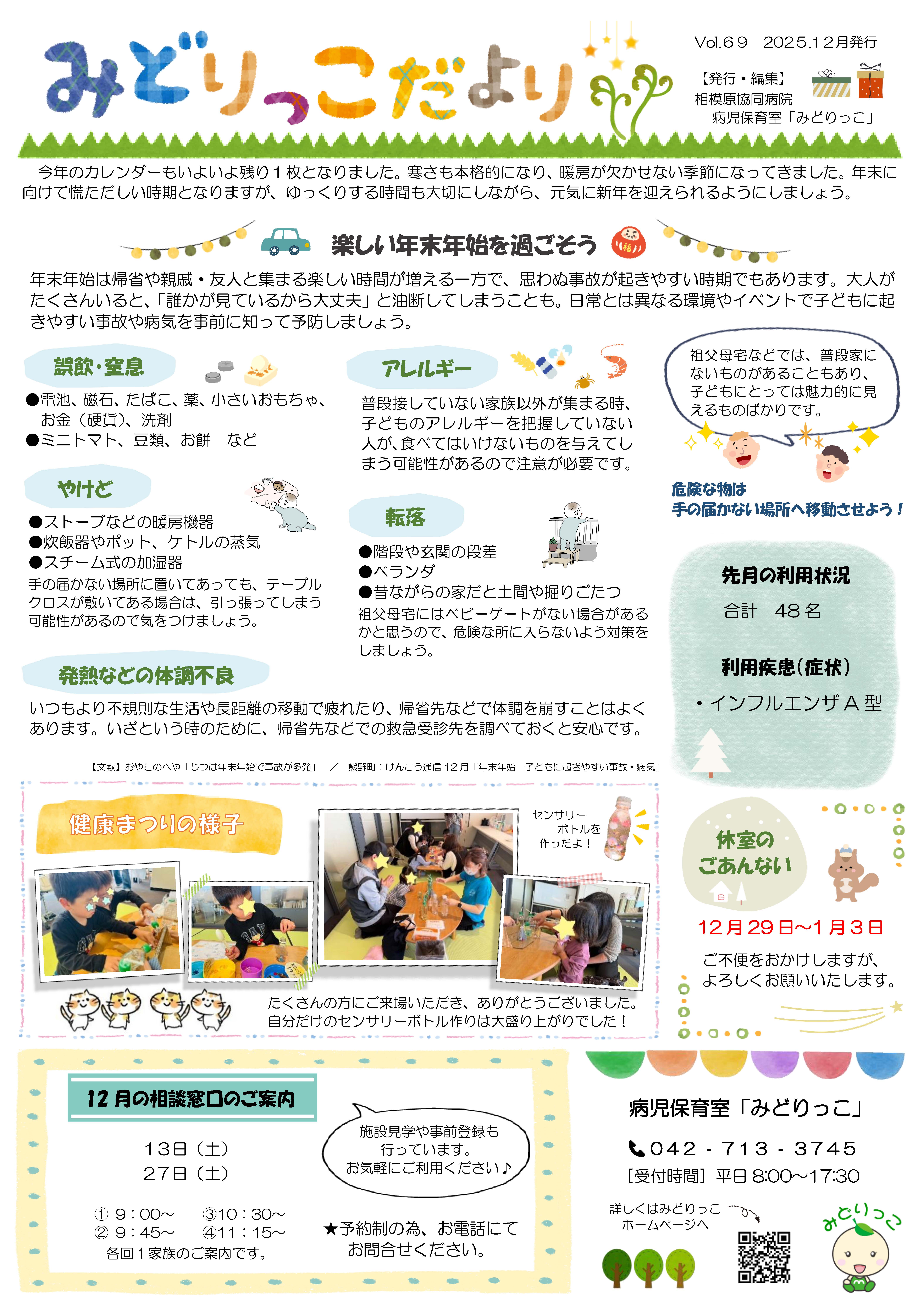 お子さまが病気やケガなどで保育施設等に通うことが難しく、保護者が仕事等の事情によりそばにいられない場合に、保護者に代わって保育看護を行う医療機関併設型の保育室です。